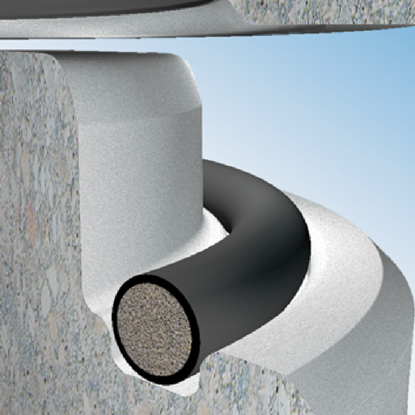 DS TOPSEAL ist ein, feinem mit Quarzsand gefüllter, geschlossener Schlauchring, der die Unebenheiten der Betonschachtringe weitgehend ausgleicht und Verkehrs- und statische Belastungen auf das Lager des darunter liegenden Schachtringes überträgt.